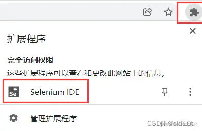 这里以谷歌为例,点进设置,选择扩展程序,搜索一下 Selenium IDE,我这已经是安装好了,