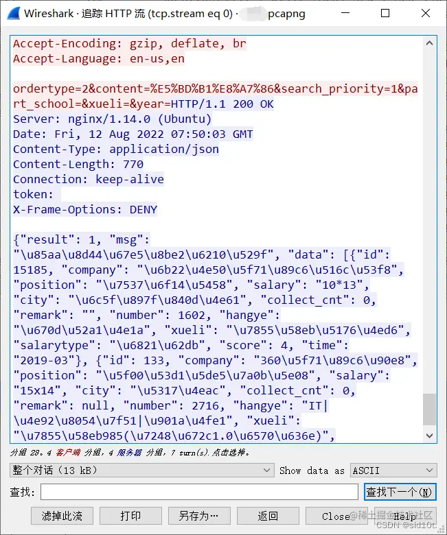 由于 OfferShow 是微信小程序,所以最早就用 Stream 进行抓包,其实那时候离结果很近了,但是没怎么注意...