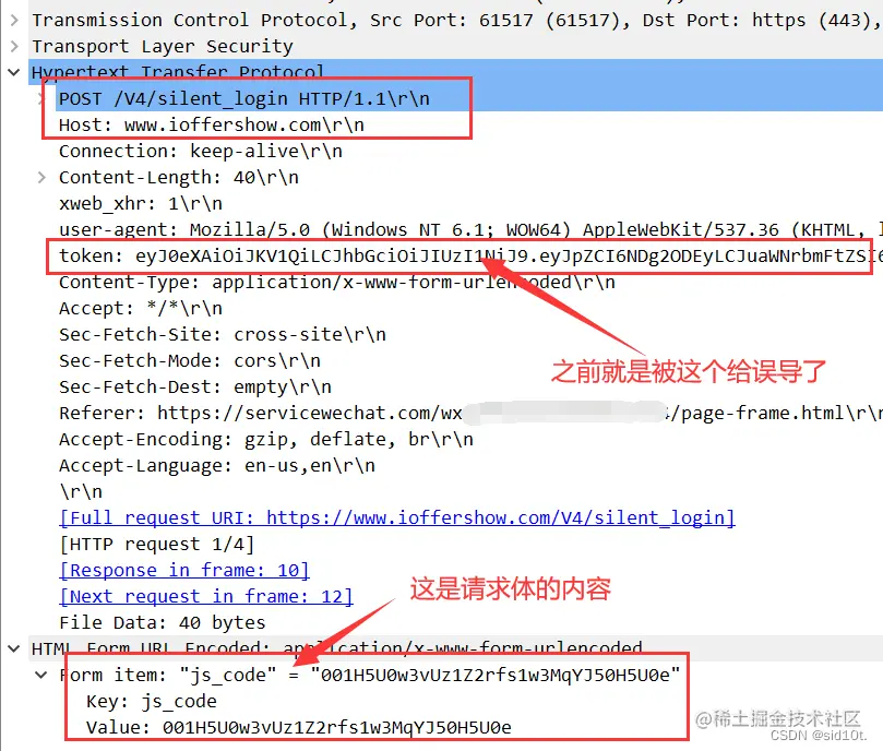 但当时没有细看,因为不是主打流量分析的,对这些词汇并没有这么敏感,而且点进去看,发现请求体里带着 token,就草草地略过了...