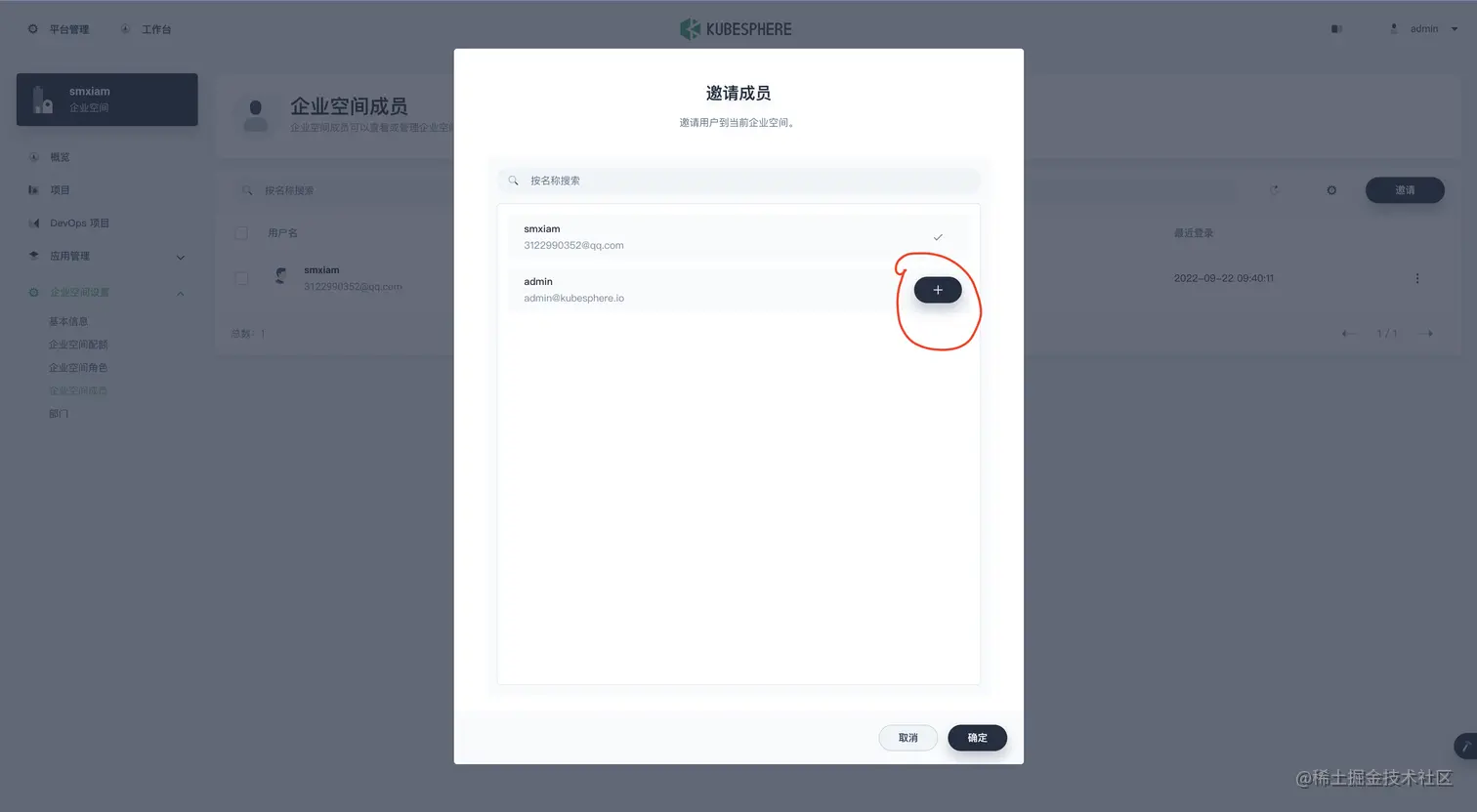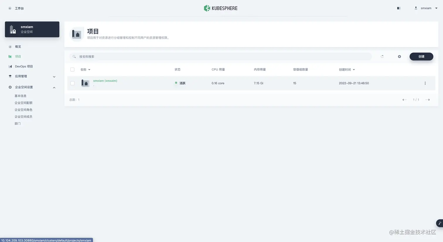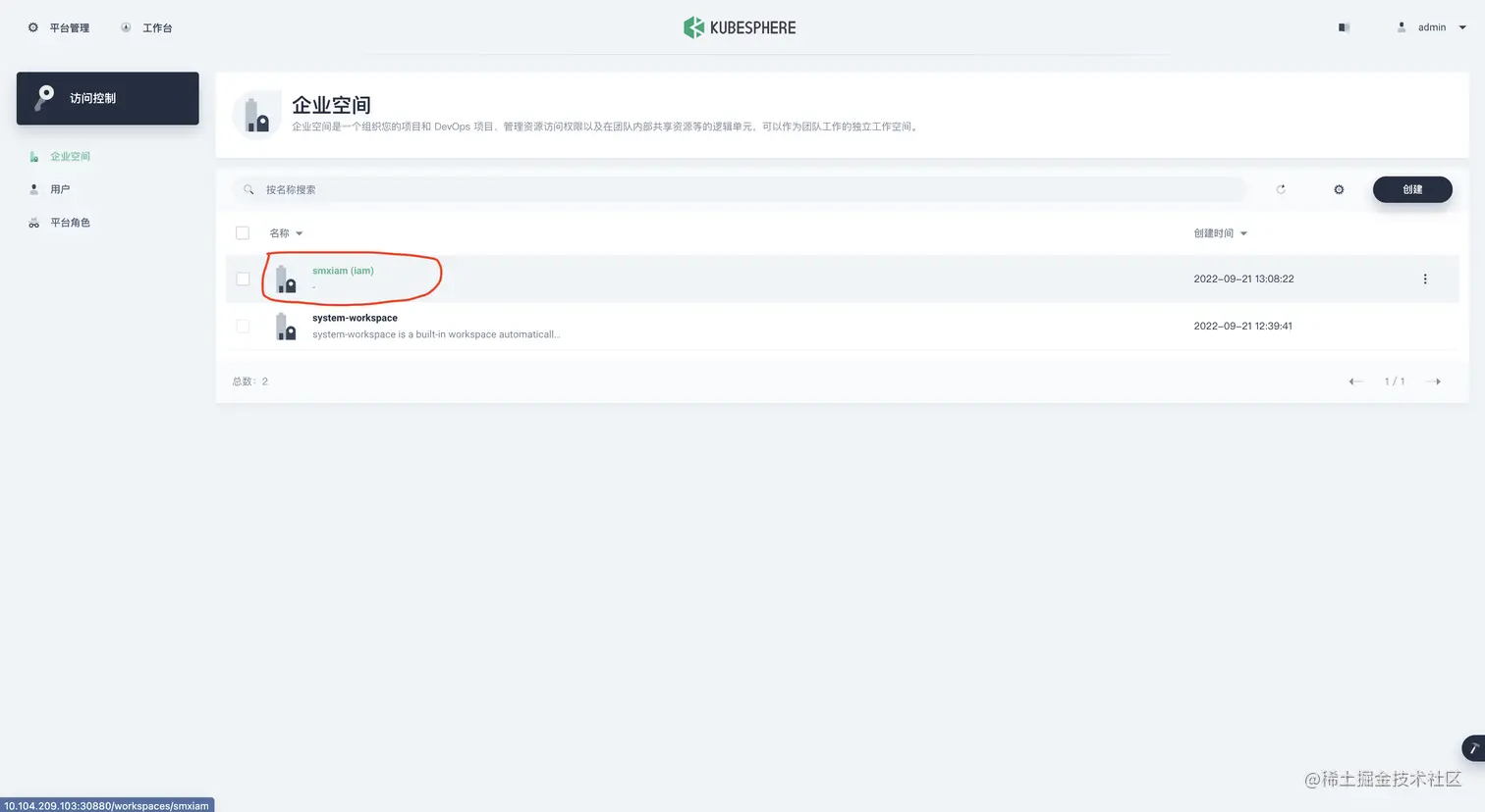 创建一下 项目&企业空间&用户 (admin 用户操作)