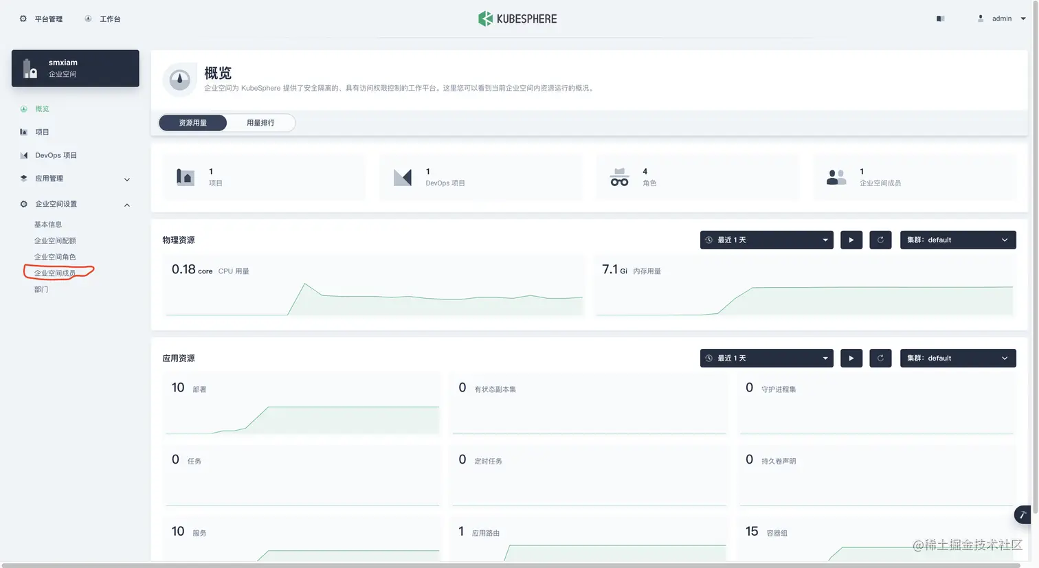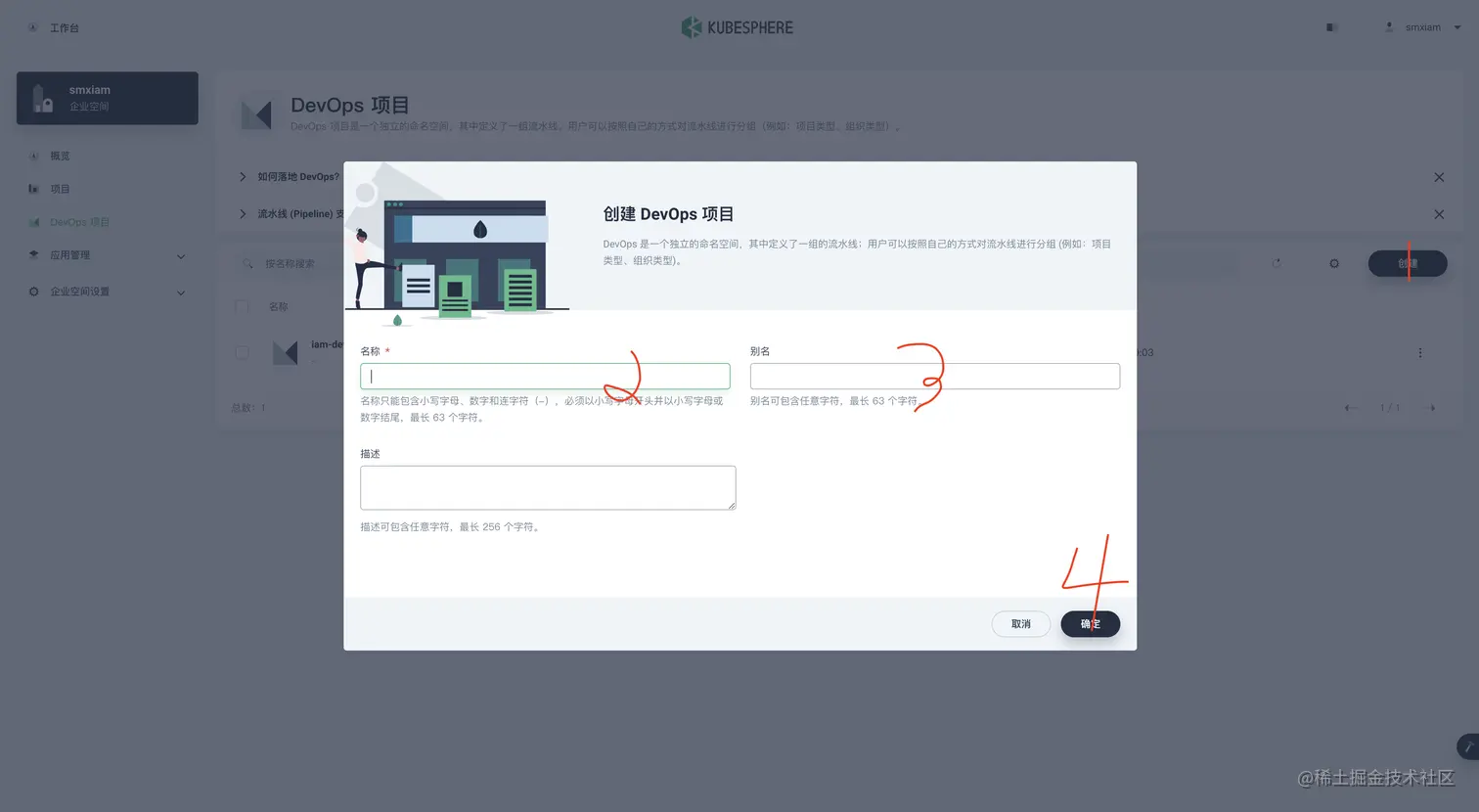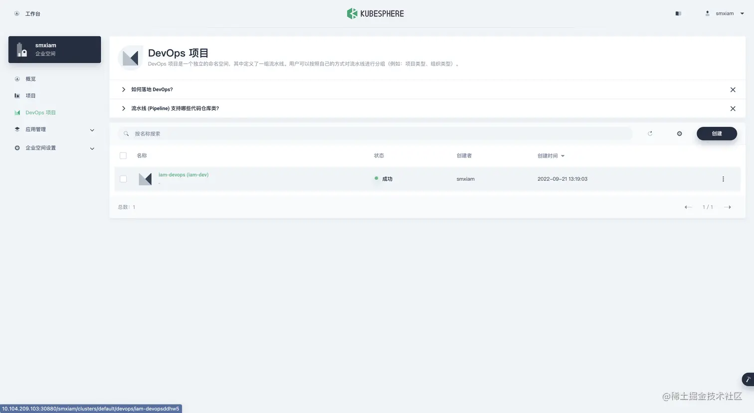 创建一下 项目&企业空间&用户 (admin 用户操作)