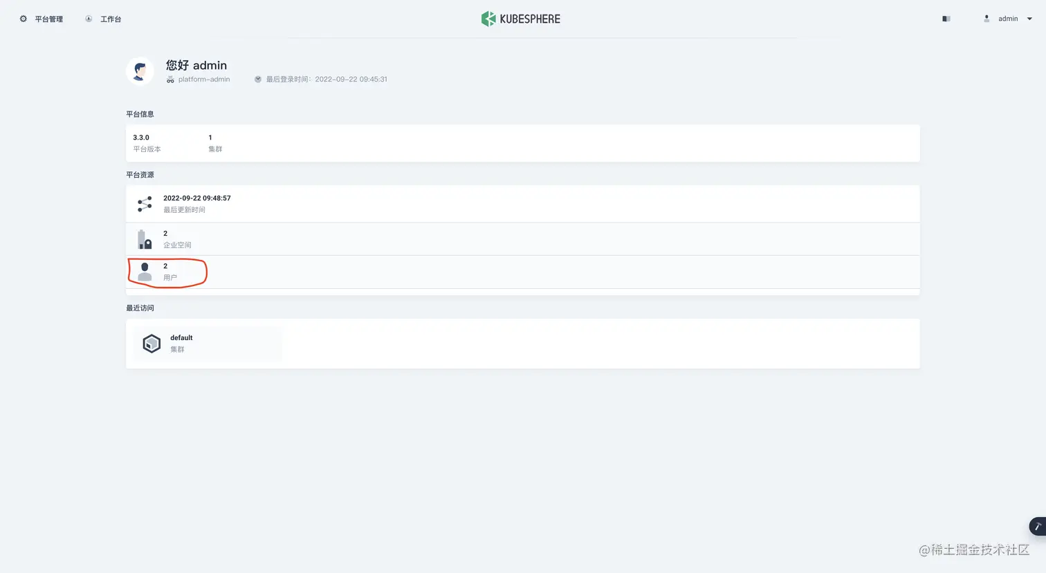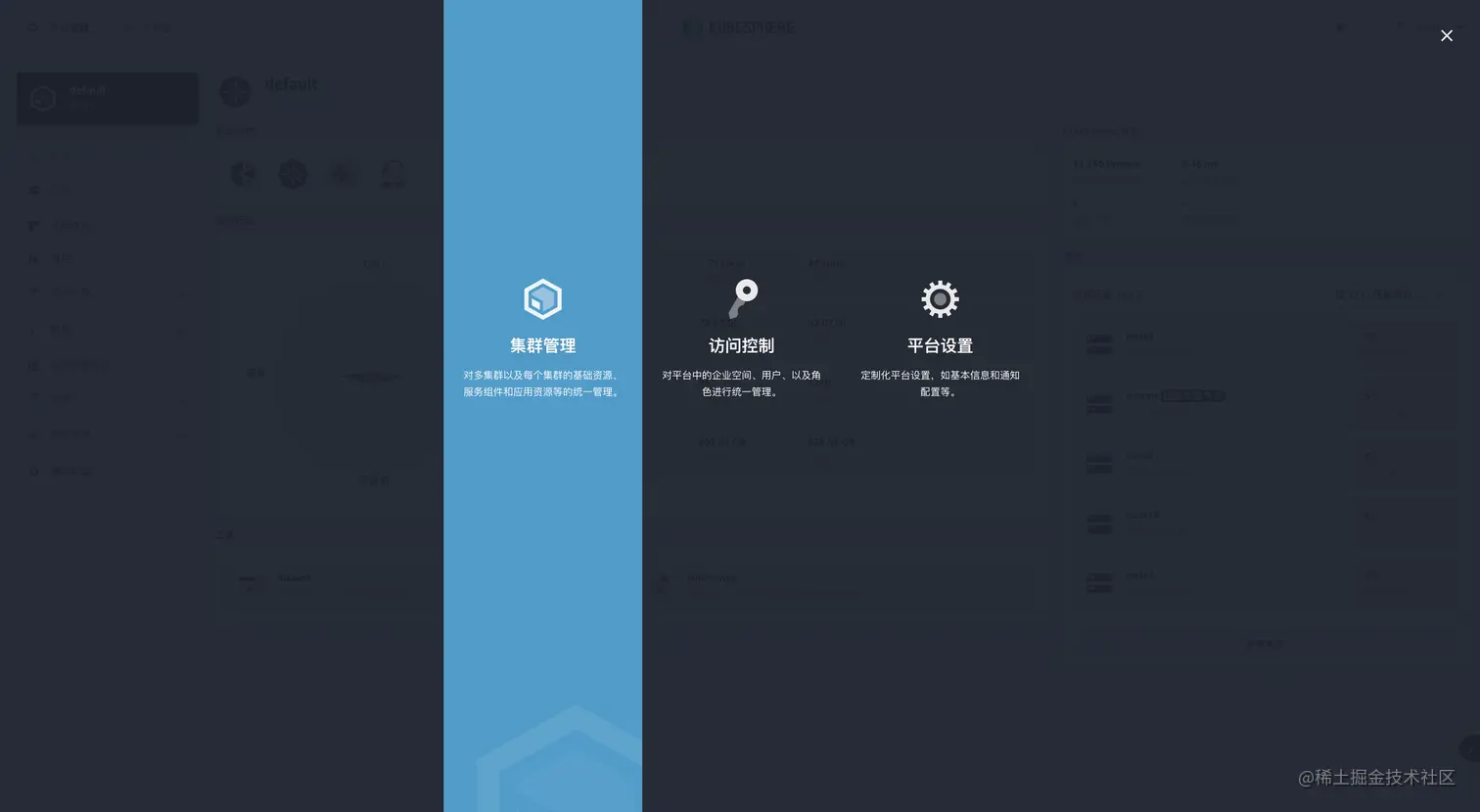点击左上角 "平台管理" 会弹出 选择页面 然后选择 "集群管理"