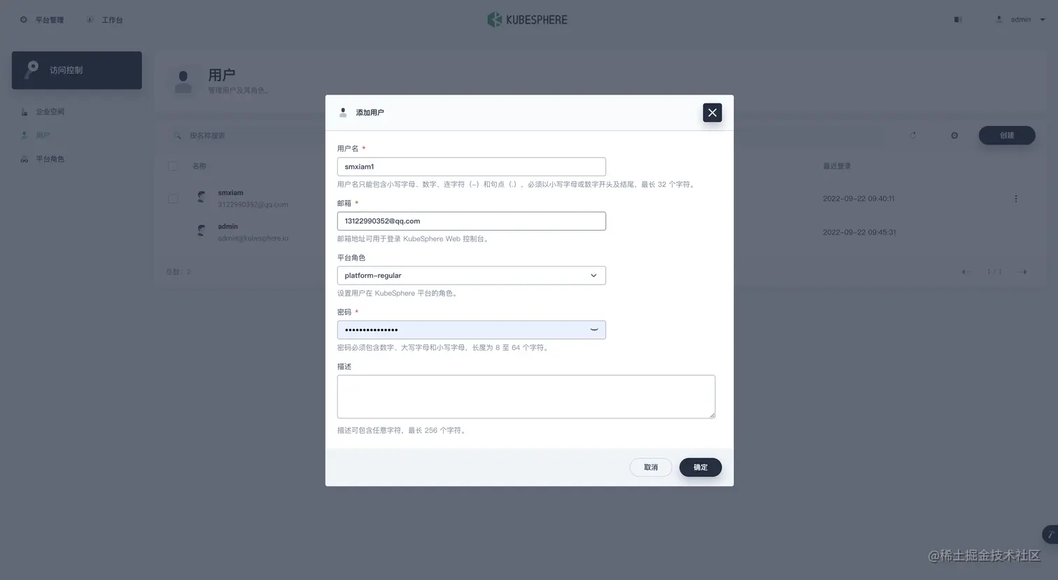 点击创建 记得平台角色选择