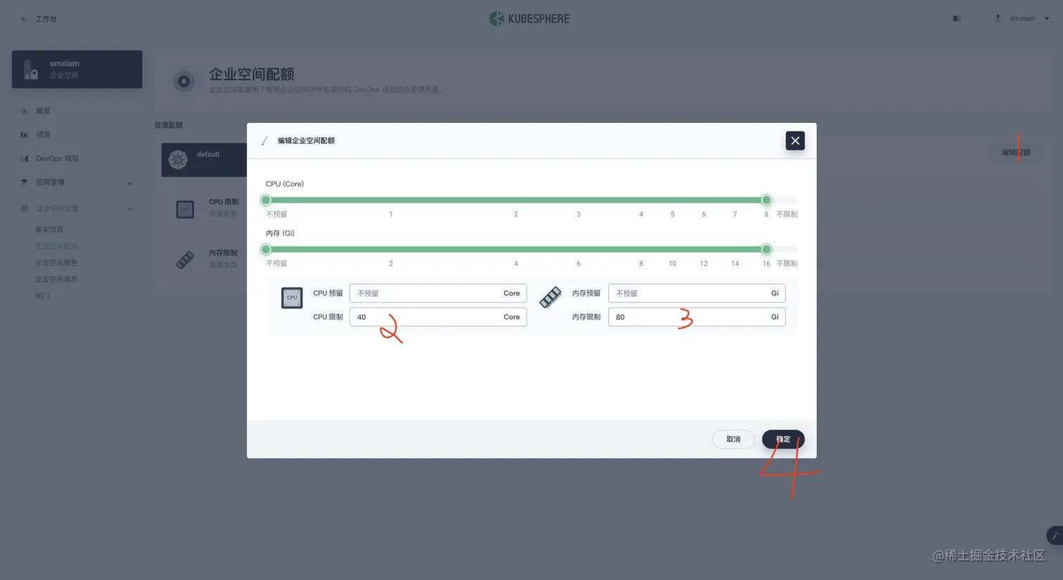 接下来设置项目配额 (就自己用的话 不用设也可以) 选择左侧菜单项目