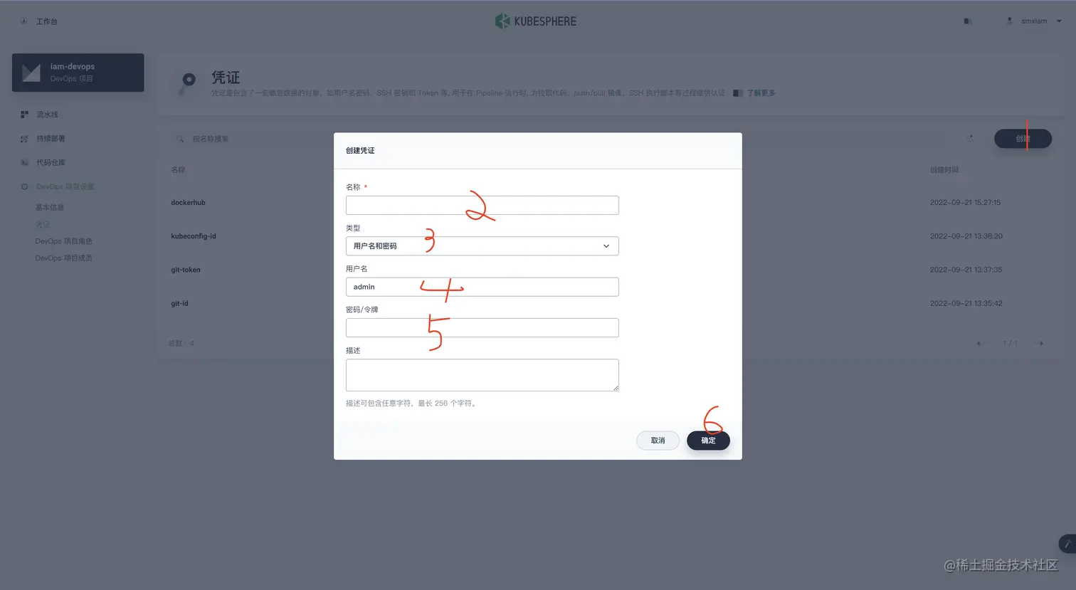 - 然后 点击 devops项目设置 -> 凭证 这里不贴图了