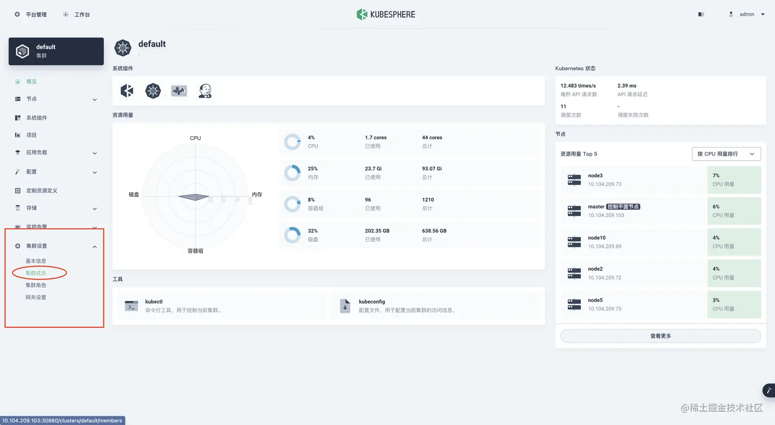 点击左侧菜单的 集群设置 -> 集群成员
