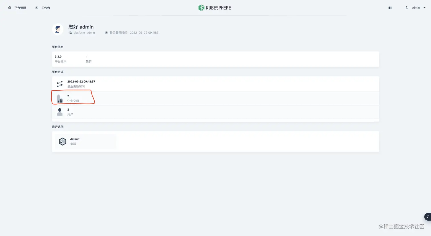 "企业空间名"-admin -
