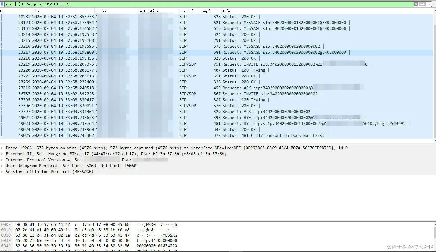 发现语音通知命令Broadcast\n和设备初始化注册命令CSeq: 15 INVITE都正常,包括上级平台的语音都已经成功发送到下级平台,所以,可以判断是下级平台在向设备发送语音时,出现了问题。