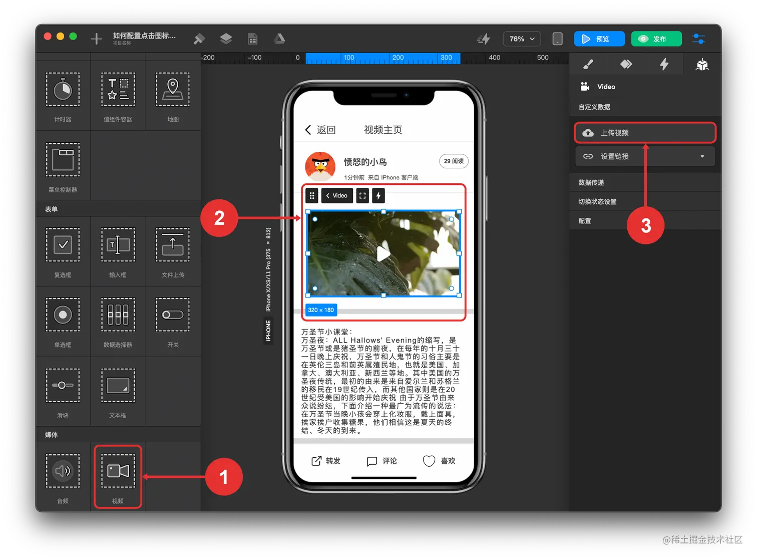 - 选中 视频组件
