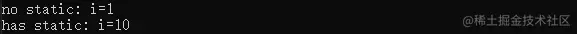 printf("has static: i=%d\n", y);
