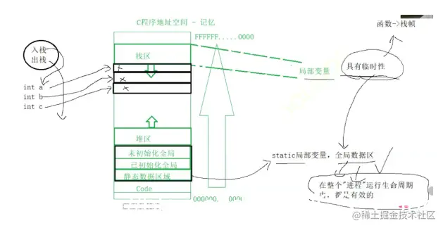 局部变量具有临时性:存放在栈区随着入栈生成,出栈结束