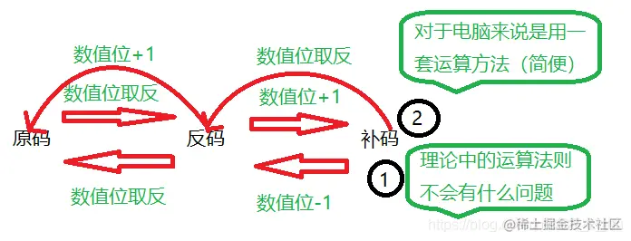 方法二:将原码到补码的过程在来一遍