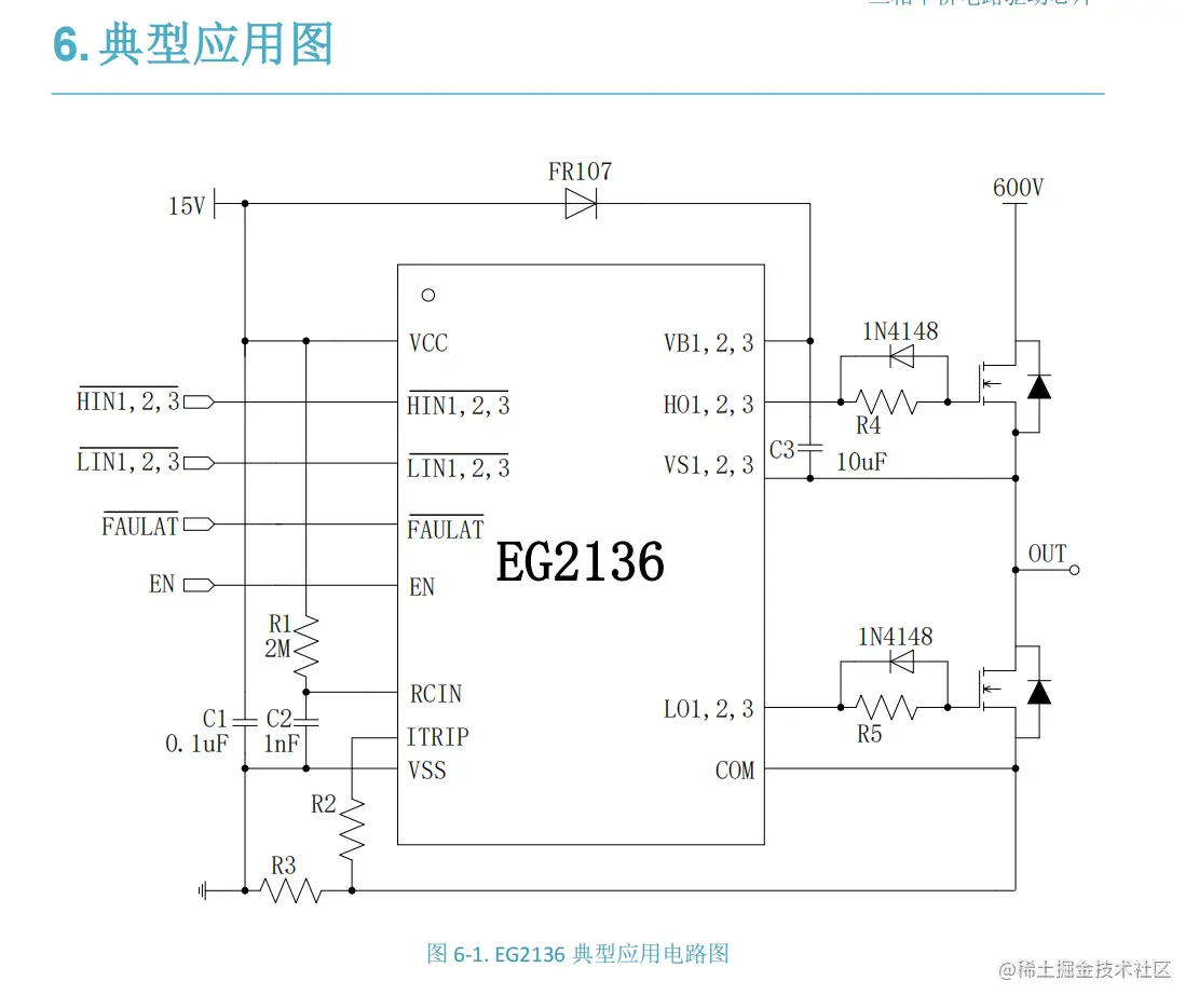 EG2136 是用作 N 型功率 MOSFET 和 IGBT 等高压、高速功率器件的三相栅极驱动电路,主要包含三个 立的半桥驱动电路。内置死区时间,可确保功率管上下桥臂不会同时导通。内置输入信号滤波,防止噪声 干扰。提供外部使能控制可同时关断六通道输出。此外,它还具有欠压保护和过流保护功能,出现异常时 立即关断六通道输出。