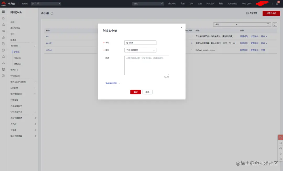 放开相应端口(这里放开全部端口)