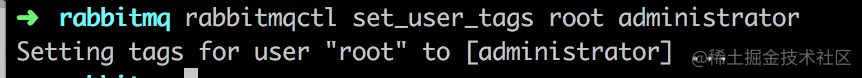 rabbitmqctl set_user_tags root administrator
