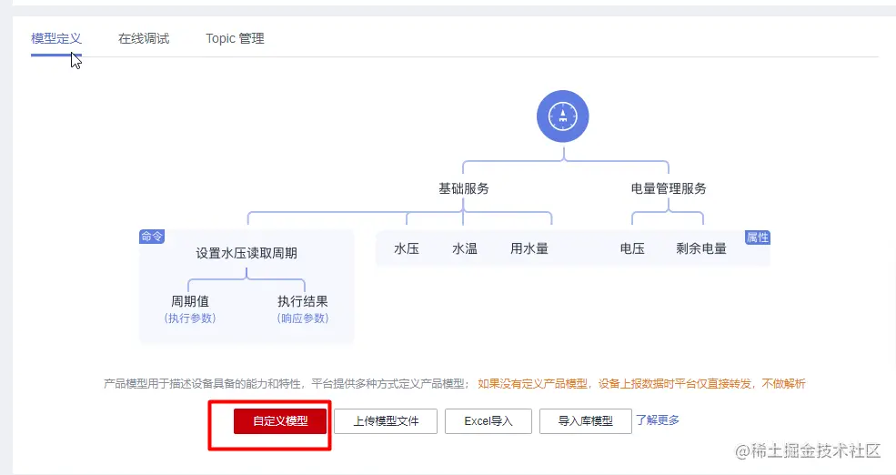 点击产品进入到查看产品详情页面(根据数据模型创建属性和命令格式)