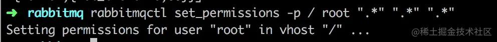 rabbitmqctl set_permissions -p / root ".*" ".*" ".*"