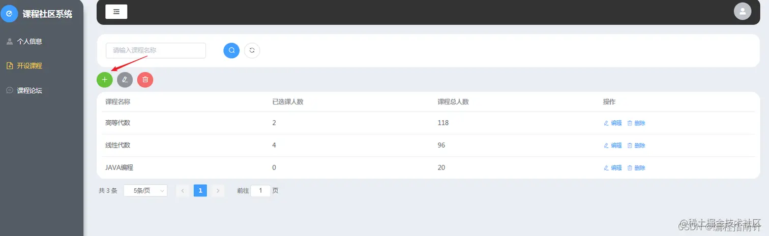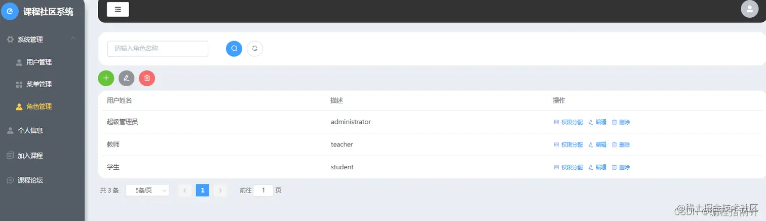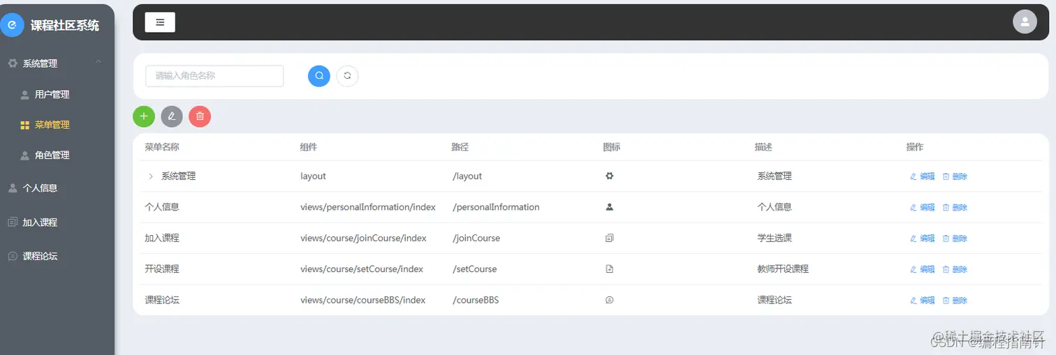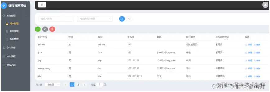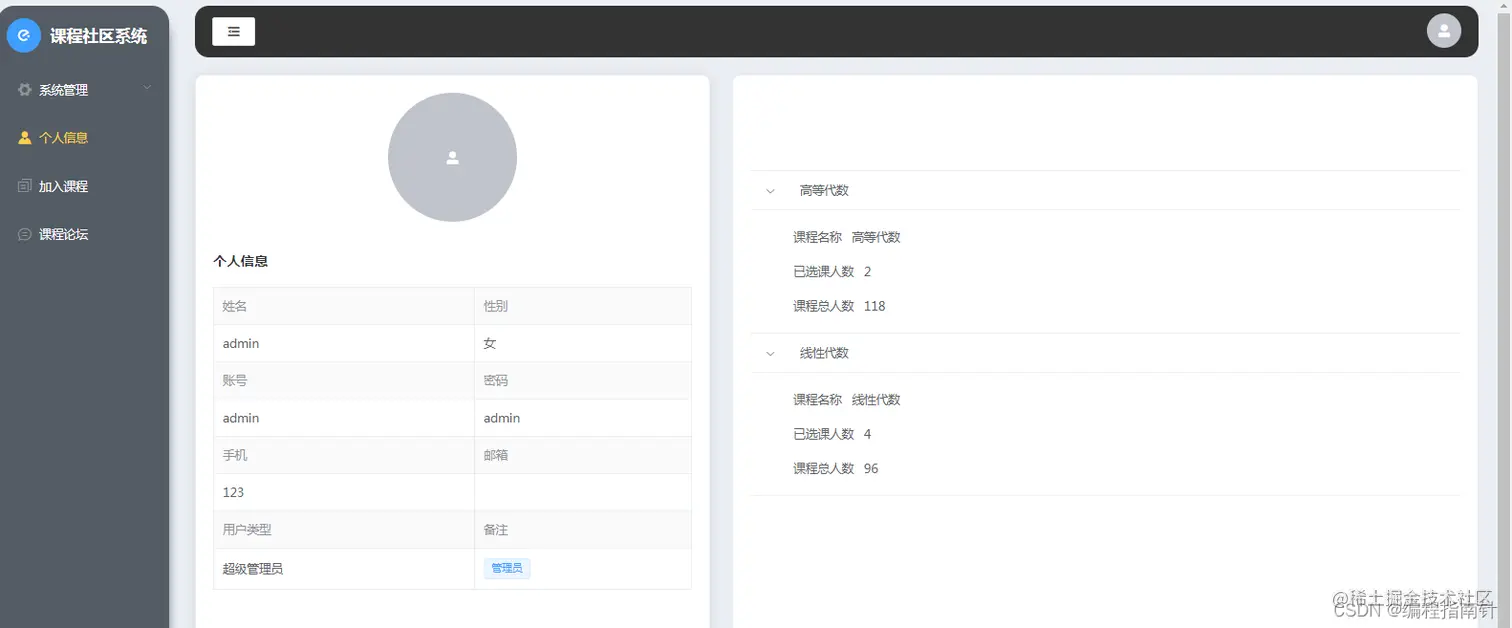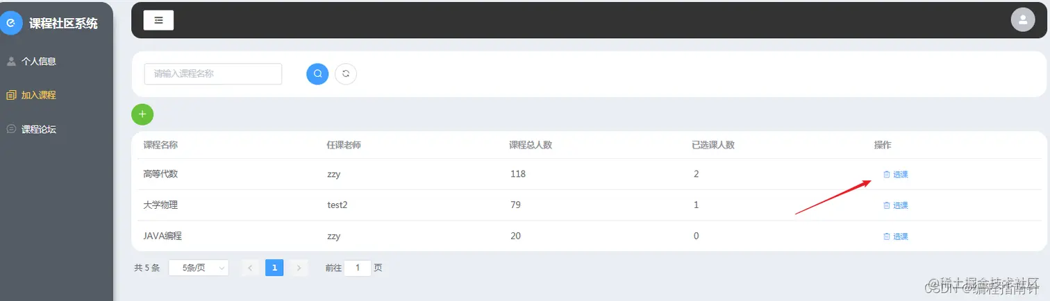 本项目主要实现一个基于课程选课的社区交流系统,主要的业务背景为每个老师可以自己开设相应的选修课,并指定可以选修的人数,学生登陆系统后可以进行选课,并可以在线针对自己的选课进行在线讨论,点赞等互动行为。管理员则主要是对基本信息的相关管理,比如用户和角色、权限管理等,本系统有着完备的权限管理控制系统,可以根据需要自定角色并分配相应的权限。系统采用前后端分离开发的方式来实现。