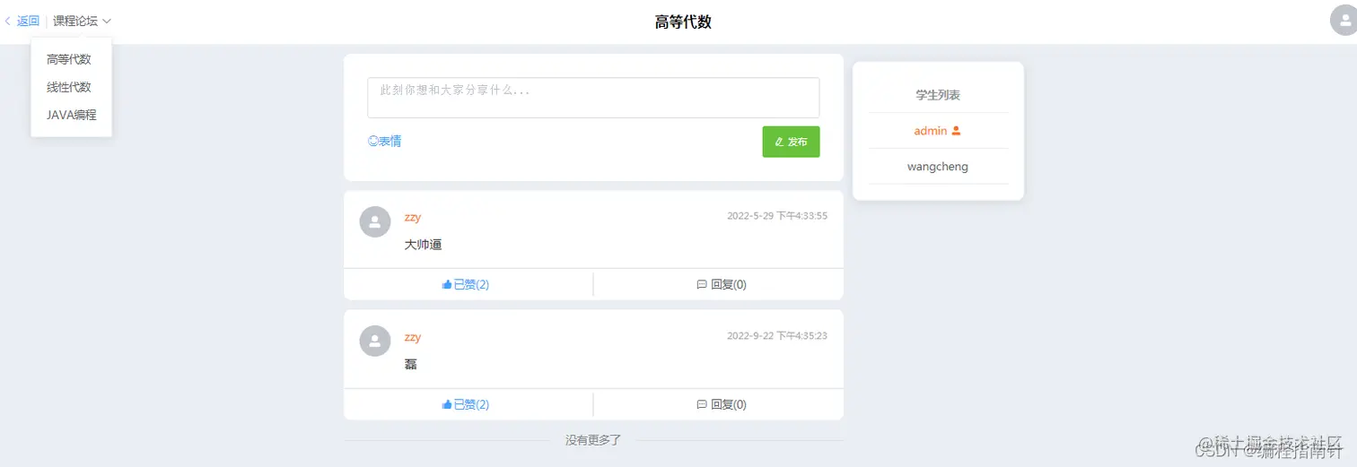 * 查询当前课程的论坛数据