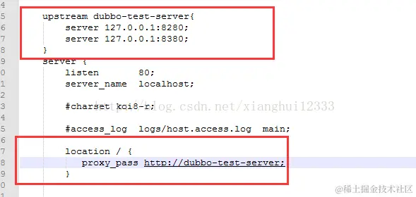 5.2我们新建个upstream 负载均衡,采取默认的nginx负载均衡策略,然后监听80端口,将80端口所有的请求代理转发到负载上面