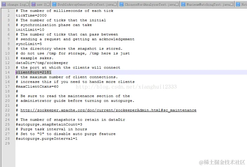 1.3:打开zoo.cfg,入手阶段基本不用做什么修改,唯一需要注意的是端口号,后面的dubbo 管理配置需要和这个保持一致(后面说)