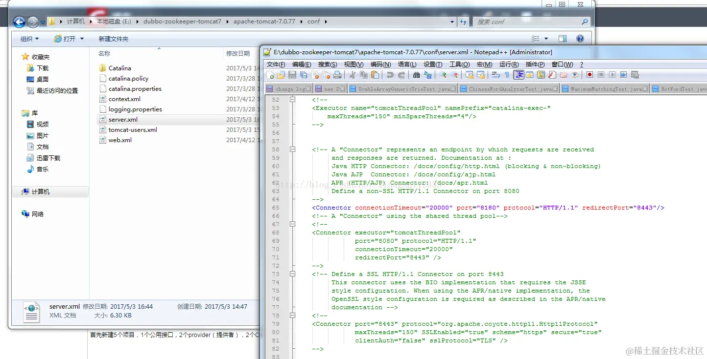 2.3 拷贝一个tomcat,改一下端口号(用默认容易和其他的tomcat端口冲突)
