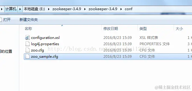1.2:然后解压到一个目录,打开conf目录copy一份zoo_sample.cfg文件,并重命名为zoo.cfg(必须是这个名字)