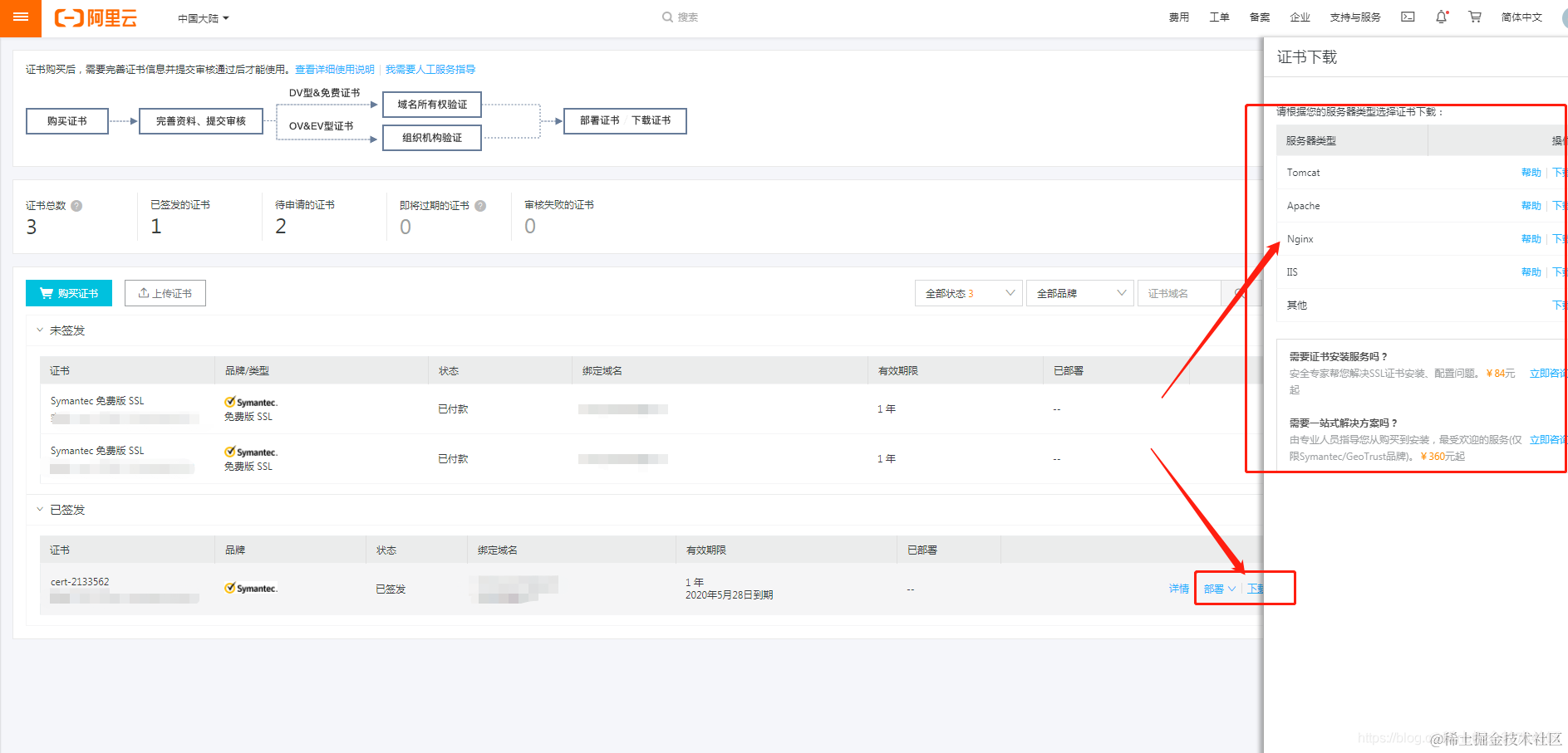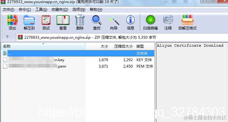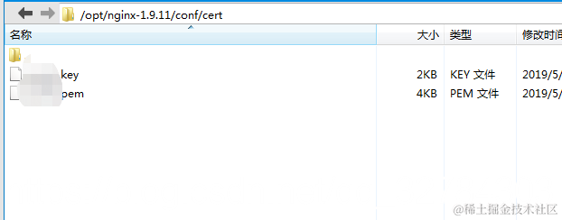 3.将下载下来的压缩包打开,复制里面的文件到服务器nginx配置cert目录下,可以更改名字