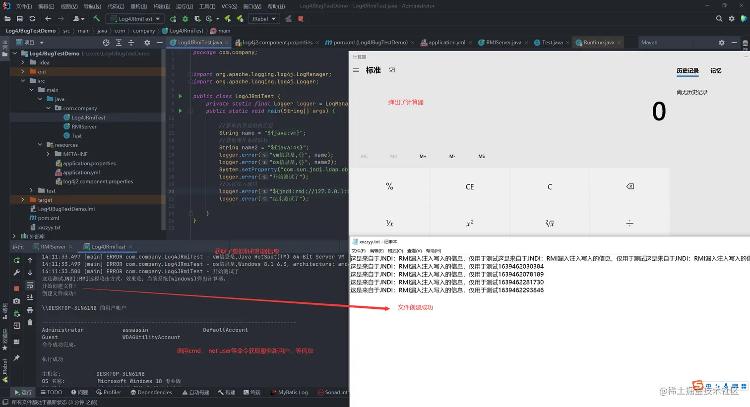 //远程注入调用,注意调用语法,jndi:rmi, 后面的服务名,就是前面发布的服务名