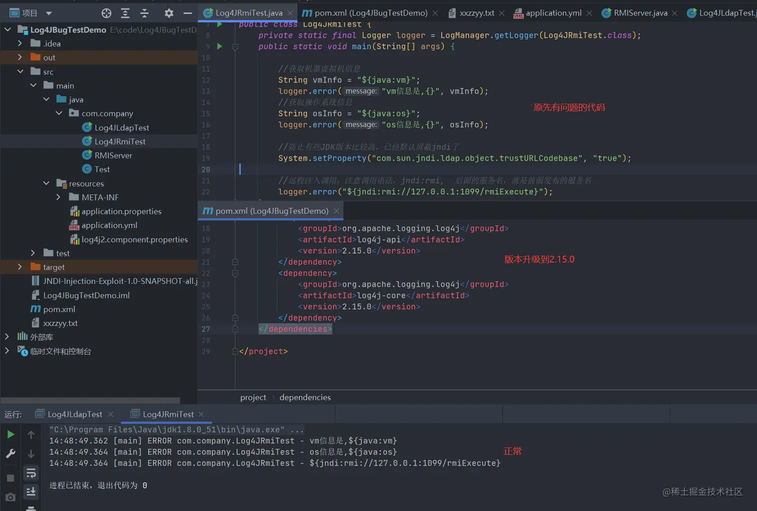引入log4j-api和log4j-core两个文件 大于2.0, 小于 2.15.0的都可以