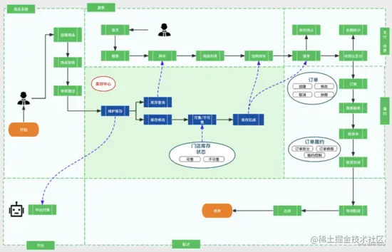 关于业务划分,网上有很多方法论,事件风暴法、四色建模法等等,但是万法不离其宗,那就是围绕事件。以库存系统举例:库存初始化(门店 + sku 库存创建)、库存数量维护(修改现货数量、修改可售状态)、扣减业务(购物车扣减、提单扣减、订单取消扣减)、提醒业务(缺货提醒)等。每一个事件都有独立的链路轴,以及时间线可以形成闭环。