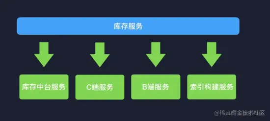 - 随着业务的发展,库存面向多个服务:B 端业务,平台内部业务系统、平台外部中台。C 端业务,订单商品扣减库存、网关查询库存数量。