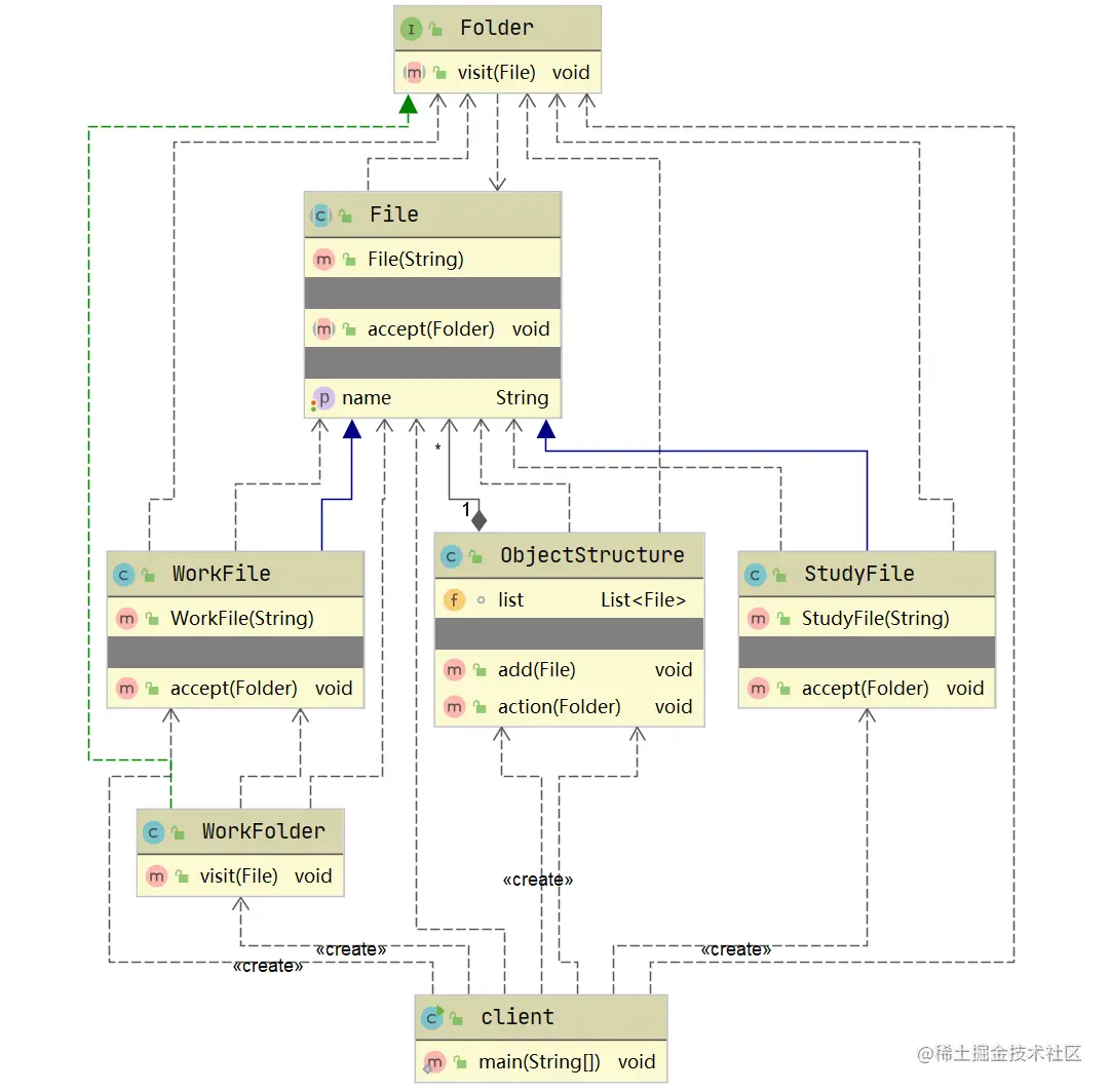 具体访问者类(StudyFolder/WorkFolder)
