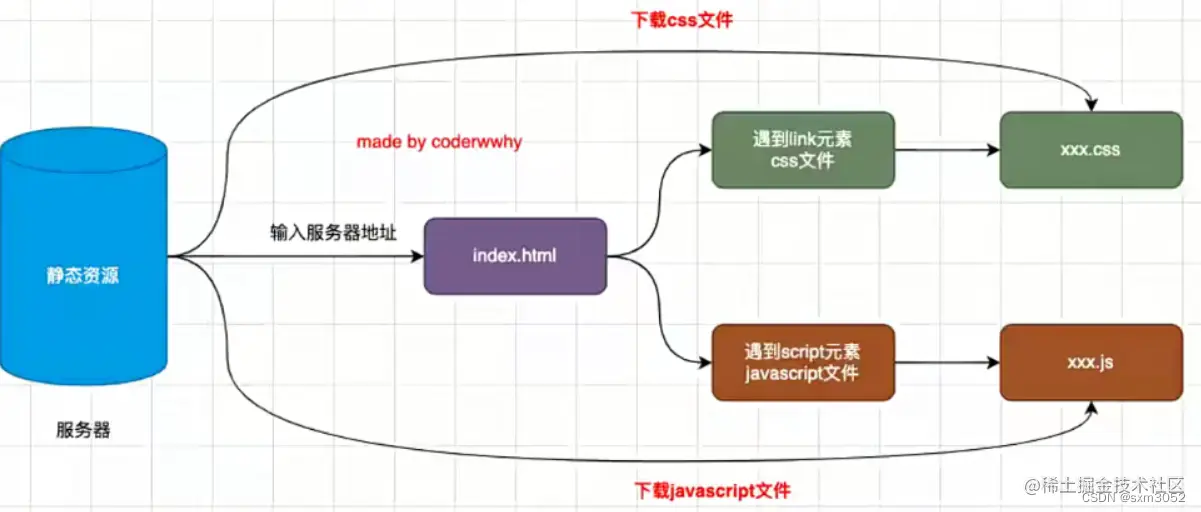 这张图就体现的很明显了,当浏览器解析html文件的时候,如果遇到link,src这种时,就会去服务器吧对应的css文件和js文件下载下来,不过css的下载不会阻塞html 的解析,但是js会,我们后面在解释。
