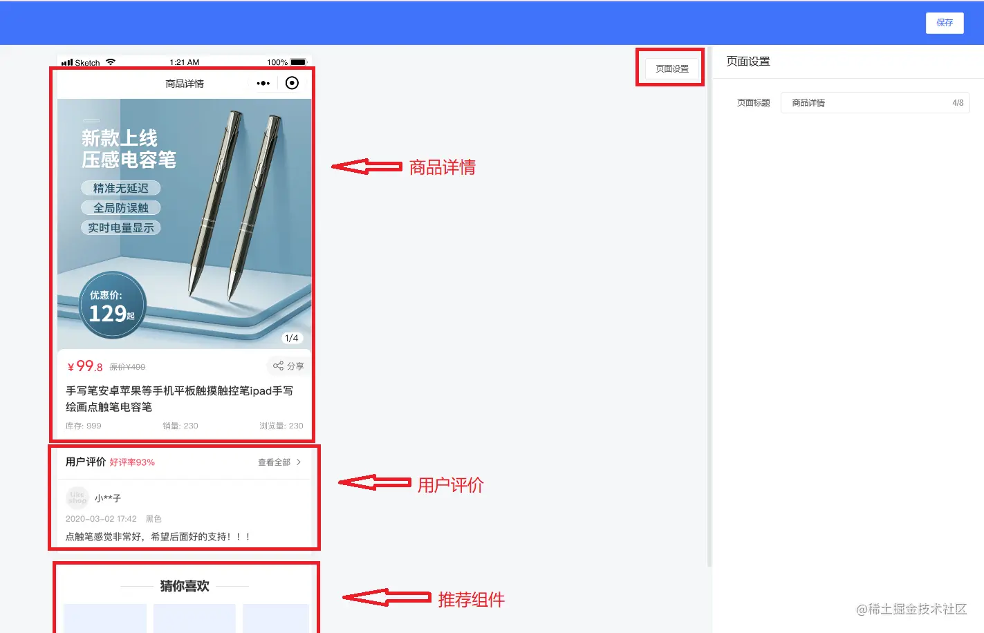 用户评价:用户购买商品后做出的评价,用于用户体验商品后的总结,可以给想购买商品的其他用户一个参考。该组件只能控制显示、隐藏。