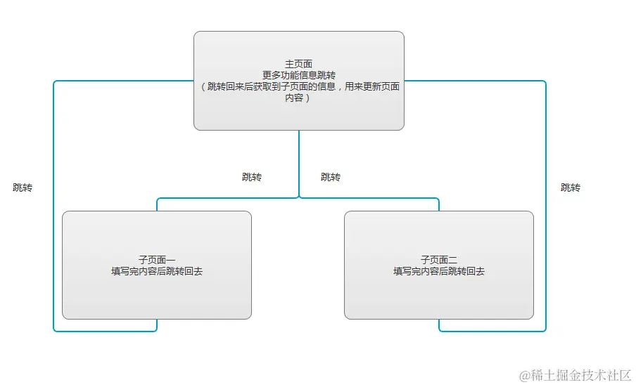 问题描述:一个主页面,需要联通一到两个子页面,子页面传值到主页面,主页面更新