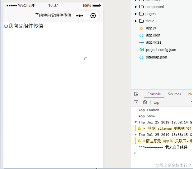 与微信小程序自定义组件中子组件向父组件传值一样的逻辑,都是通过事件,下面直接上代码: