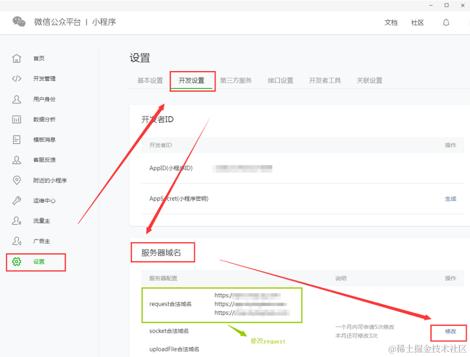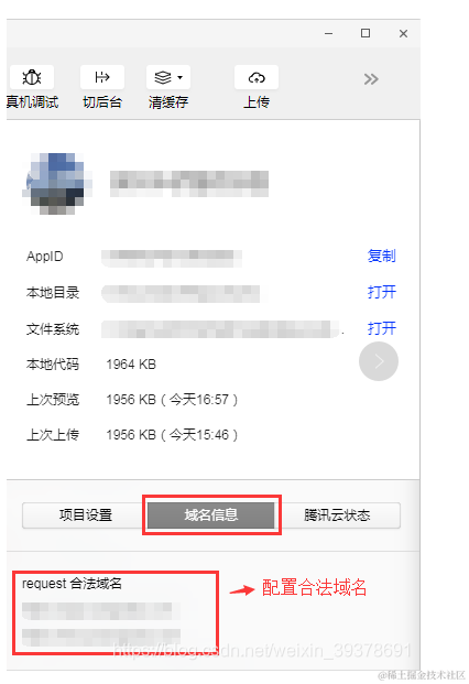 3.配置合法域名(工具 -> 项目详情 -> 域名信息)