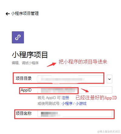管理员扫码 -> 填写好小程序的项目目录、AppID(必须是客户已注册好的AppID)、项目名称