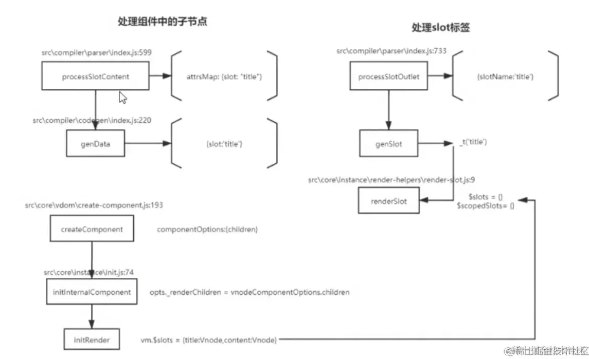 普通插槽是渲染后做替换的工作。父组件渲染完毕后,替换子组件的内容。