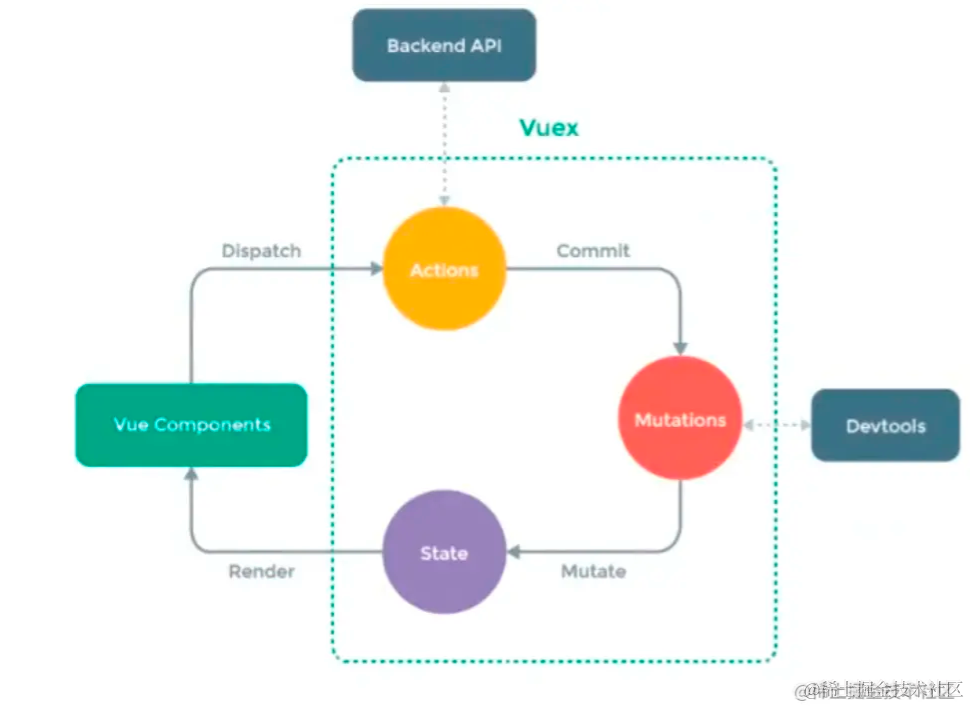 - action 执行业务代码,方便复用,逻辑可以为异步。不能直接修改状态。