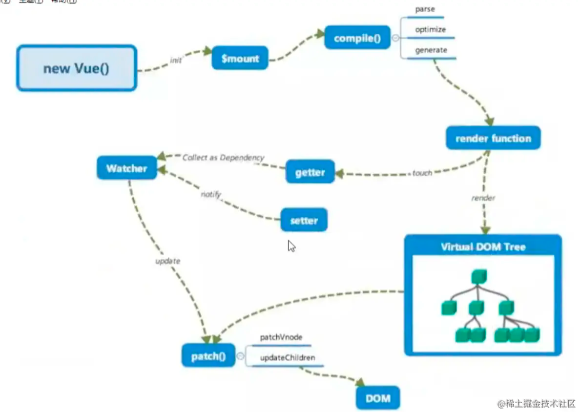 - 响应式数据变化,Vue确实可以在数据变化的时候,响应式系统可以立刻得知。但是如何每个属性都添加watcher的话,性能会非常的差。