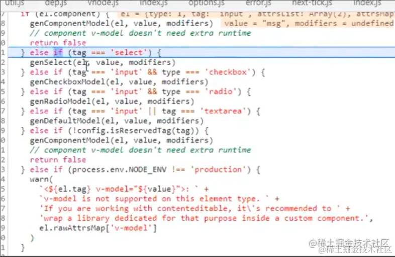 在普通元素上用v-model,会生成指令,还可能因为不同的元素: