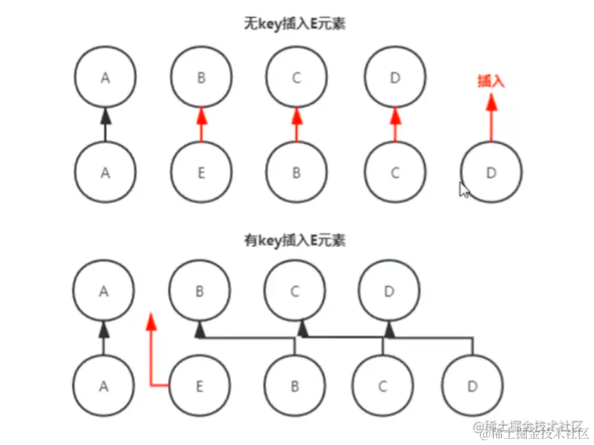 - Vue在patch过程中,通过key可以判断两个虚拟节点是否是相同节点。