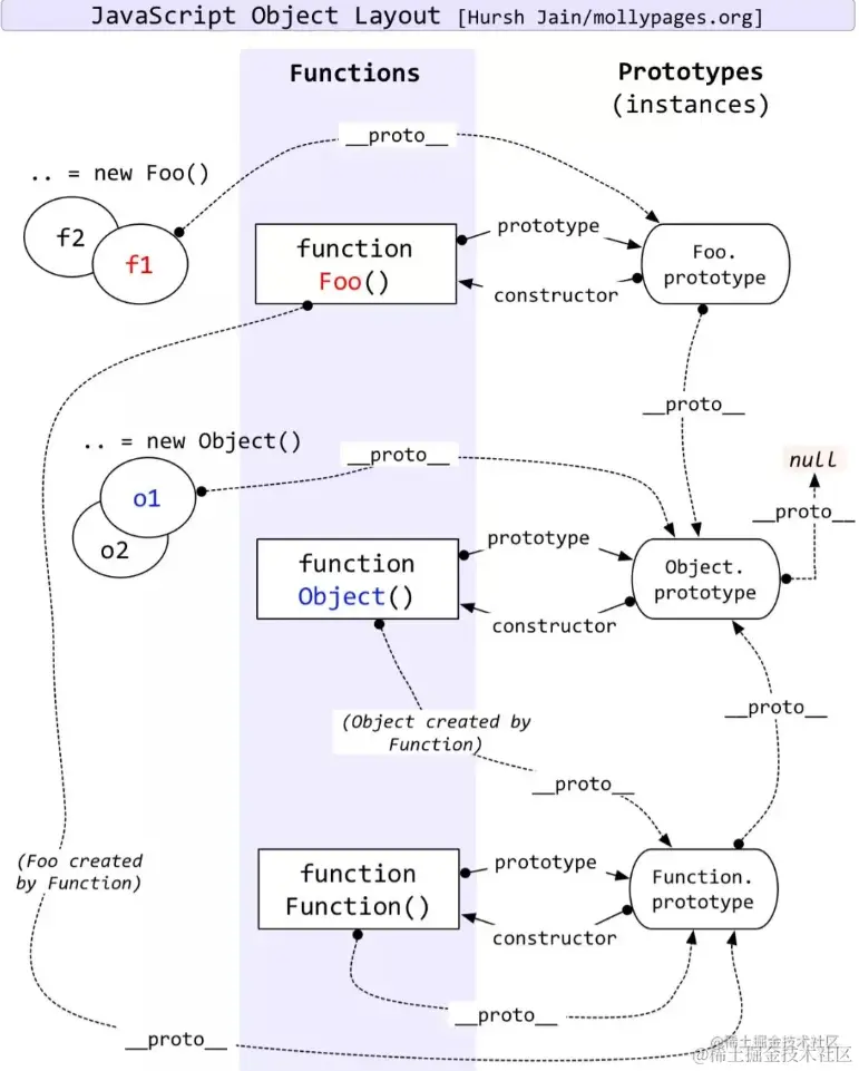 Function的实例,即普通函数继承于Function.prototype。func.__proto__ === Function.prototype。 Function.prototype继承于Object.prototype,并且没有prototype这个属性。func.prototype是普通对象,Function.prototype.prototype是null。- 总结,