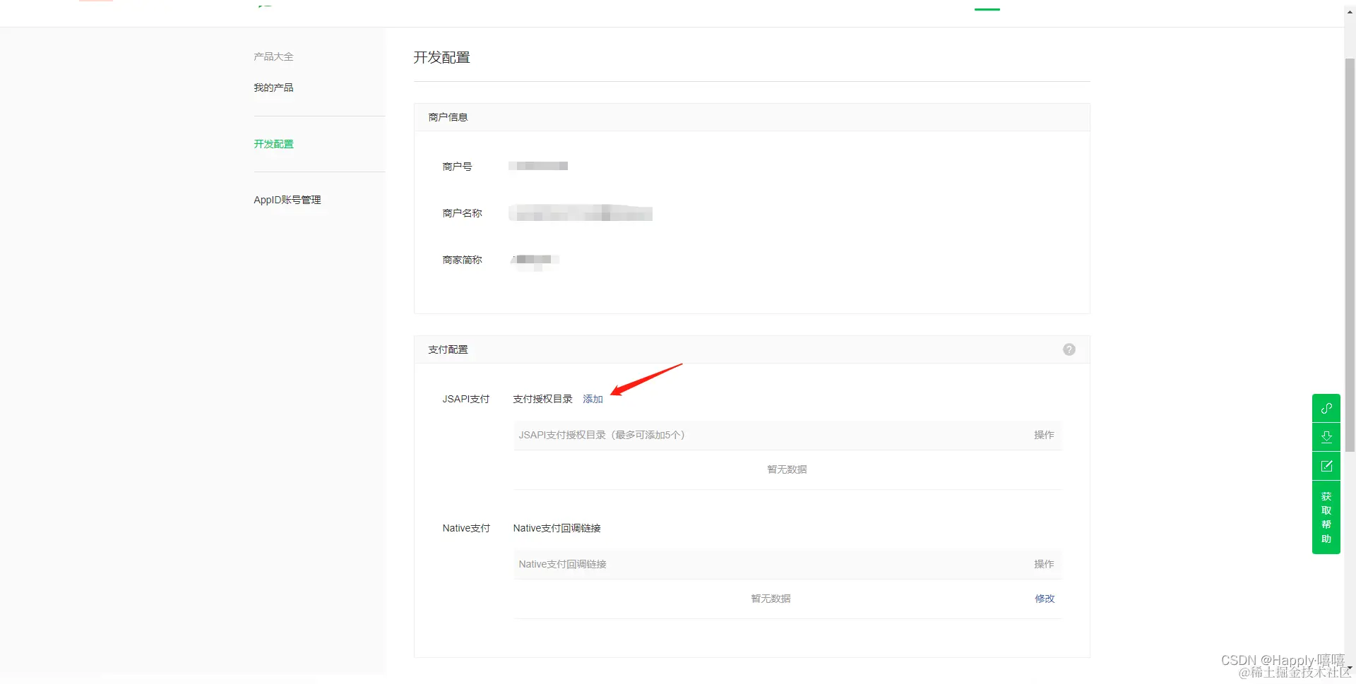开发配置中需要填写支付授权目录,此处填写后端服务器域名即可。