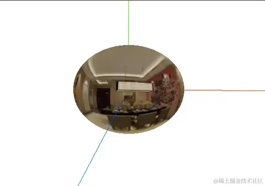 终于到这里了现在正式开搞 😤 , 先通过上面介绍的基础原理把 渲染器-renderer, 场景-scene,相机-camera , 弄出来 , 然后全景图实现原理是,首先在坐标轴的中心创建一个,带图片纹理的小球 当前这里不一定要用球体 ,其他形状也是可以实现的 , 具体根据使用场景来定义