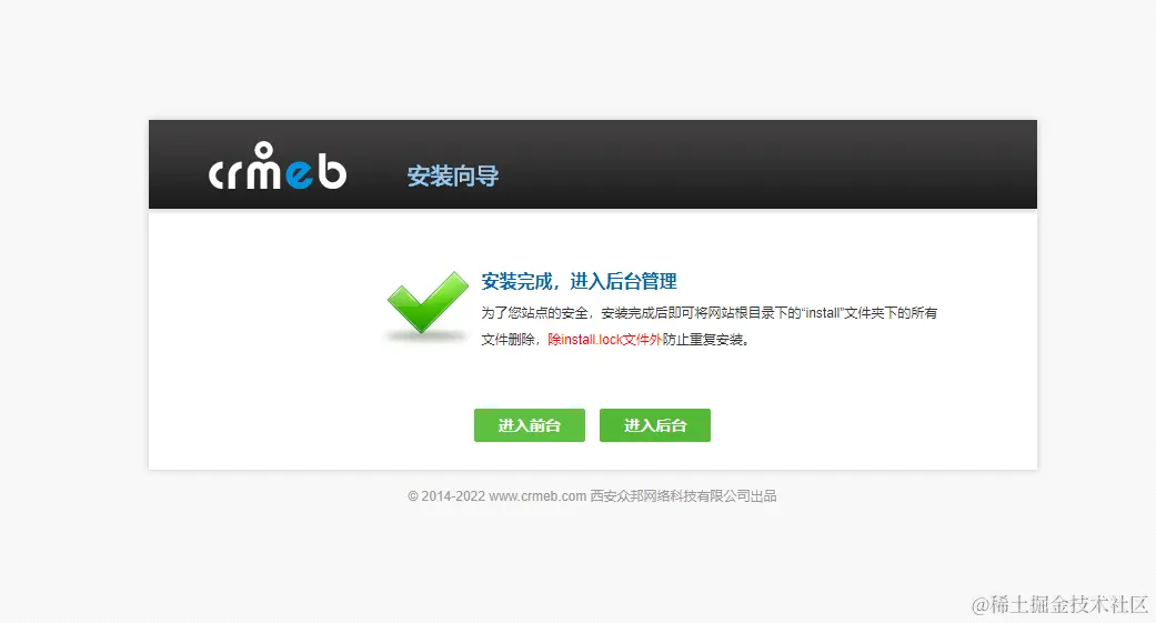 如果安装完成后还需重新安装,可以删除install.lock文件再重新打开网站即可重新安装。