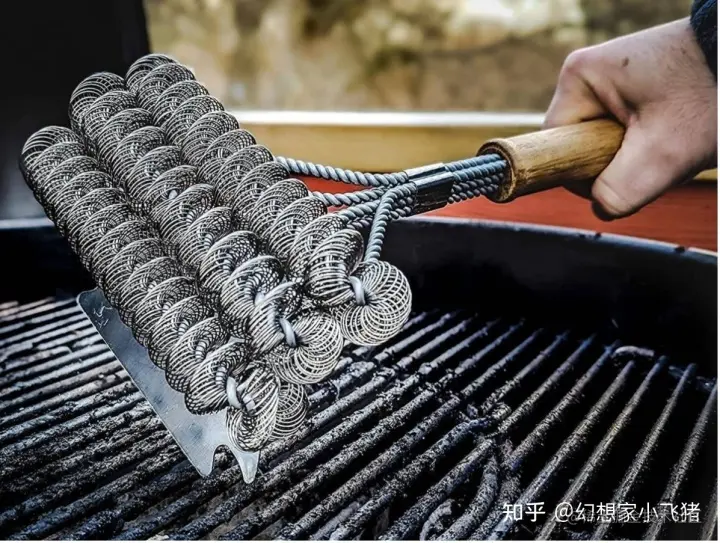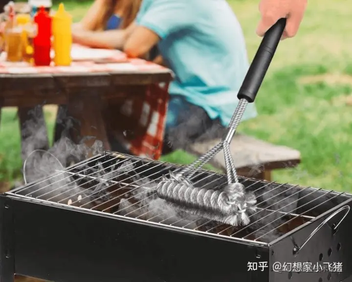 户外烧烤用烧烤刷可以从烤架上去除所有粘性、烧焦的烧烤酱,准备下次使用。一般是具有大型研磨清洁表面,可在格栅之间移动,去除任何粘在食物或污垢上。不锈钢刷子用于清除碎屑,而另一面则具有锋利的边缘用于刮擦。