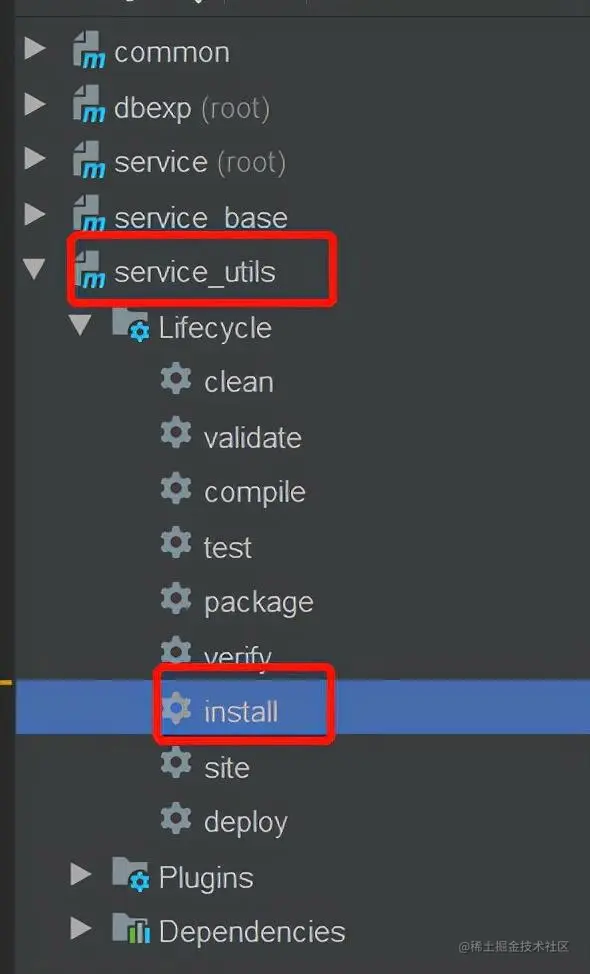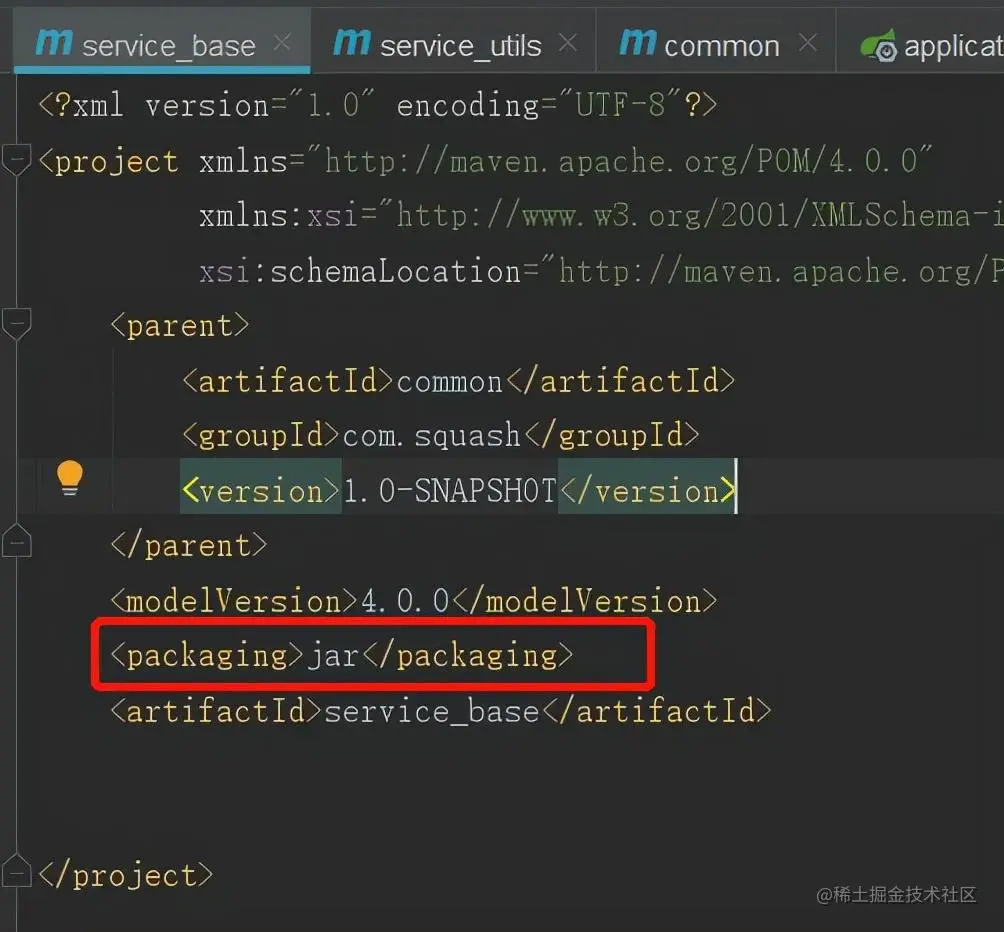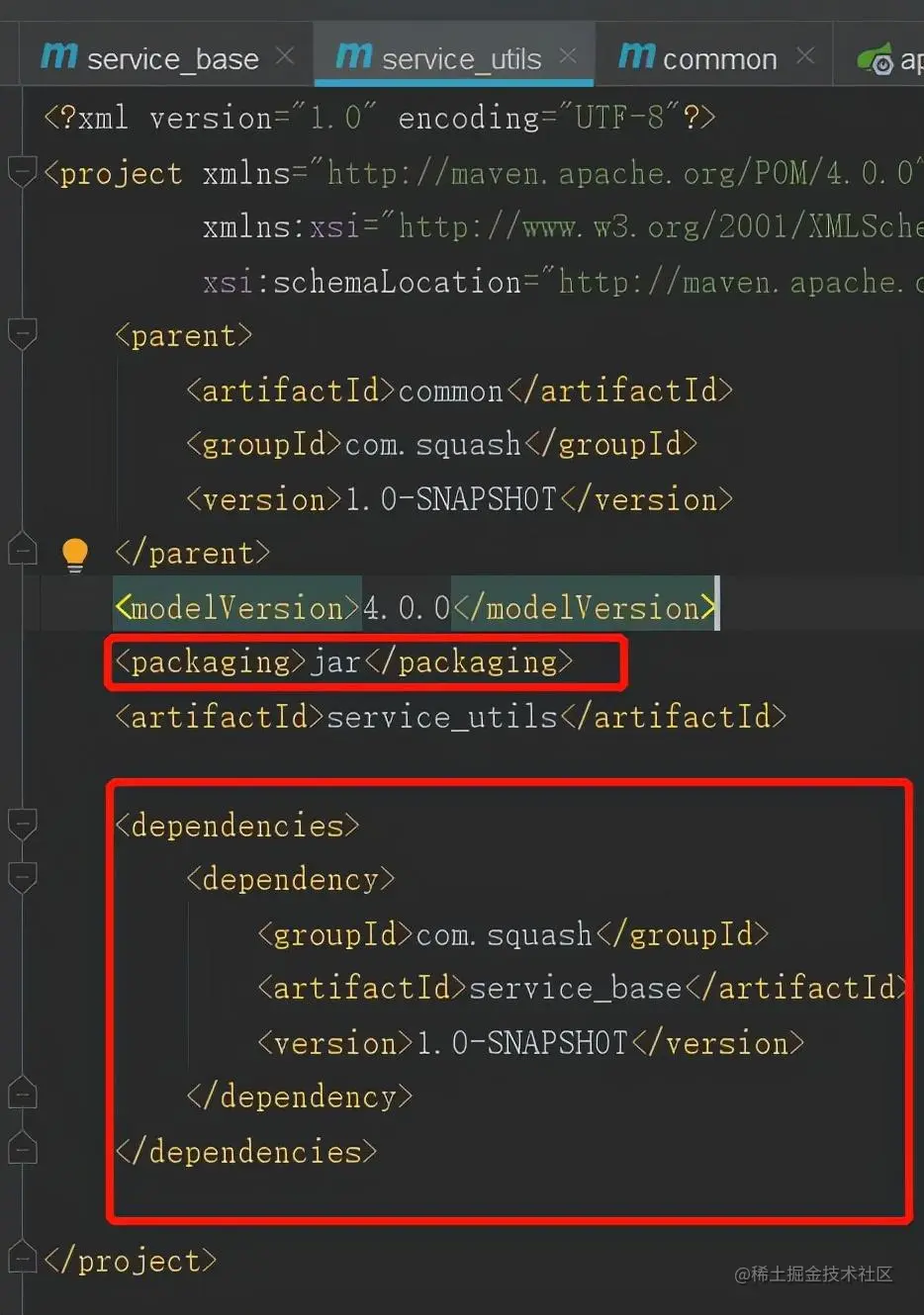 service子模块作为web启动模块,需要配置build,并且作为jar包,其中引用了service_utils模块